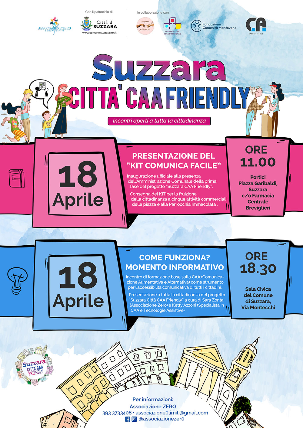 Suzzara 13/04/2026: Associazione Zero insieme al Comune di Suzzara (nella figura di Alessandro Guastalli, Patrizia Mantovani e Gianmarco Carra) e alla collaborazione progettuale della specialista in CAA e TA Ketty Azzoni lancia alla città di Suzzara una nuova sperimentazione locale con grandi potenzialità di sviluppo proponendo la creazione di una “comunità amica della comunicazione”. Il Progetto “Città CAA Friendly” mira a favorire l’inclusione sociale e l’autonomia di persone con disabilità e bisogni comunicativi complessi, attraverso la creazione di ambienti comunicativi accessibili nei luoghi della vita quotidiana. L’intervento si svolge nel Comune di Suzzara (MN) e prevede la strutturazione di esercizi commerciali di prima necessità e spazi pubblici con strumenti di Comunicazione Aumentativa e Alternativa (CAA), pannellature visive e percettivo-tattili, accompagnati d training di task analysis rivolti agli esercenti, per migliorarne la capacità di interazione con persone con fragilità. L’iniziativa è volta a rafforzare la rete comunitaria locale e creare contesti che supportano la vita indipendente e la partecipazione sociale dei soggetti più vulnerabili. Beneficiari diretti sono cittadini che vivranno attivamente in una società più inclusiva, persone con disabilità cognitive, sensoriali e comunicative, persone fragili, cittadini con scarsa padronanza linguistica (es. stranieri) e le loro famiglie/caregiver, per i quali la mancanza di strumenti comunicativi adeguati rappresenta una barriera concreta all’autonomia e all’accesso dei servizi di base. Beneficiari indiretti del progetto sono le attività commerciali e i loro operatori, coinvolti nella sperimentazione (Ortofrutta Regina, Forno B&B, Farmacia Centrale Breviglieri, Bar Zara, Bar Zodiaco, Chiesa Immacolata) che hanno accolto con disponibilità questa proposta di cambiamento all’interno del proprio negozio. “ Le Tavole di Simboli realizzate per il progetto Città CAA Friendly sono schede descrittive che raccolgono contenuti finalizzati ad una comunicazione efficace e promotrice di autonomia partecipativa per persone con Bisogni Comunicativi Complessi. La peculiarità delle schede è racchiusa nei criteri di accessibilità con cui sono state progettate ai fini di una elevata fruibilità. I contenuti trasposti in simboli sono stampati in modalità fronte, plastificati e rilegati con modalità ad anella, proponendosi così come facilitatori delle funzioni motorie per la loro maneggevolezza. I documenti non richiedono di essere sfogliati ma grazie a semplici movimenti tattili di sfioro è possibile muoversi tra le pagine.” Ketty Azzoni, specialista in CAA e tecnologie assistive Sabato 18 Aprile alle ore 11.00 in Piazza Garibaldi ci sarà l’inaugurazione ufficiale della prima fase del progetto “Suzzara Città CAA Friendly” alla presenza del Sindaco Alessandro Guastalli e del Vicesindaco Patrizia Mantovani e la consegna ufficiale del “Kit comunica facile” per la fruizione della cittadinanza alle cinque attività commerciali della piazza e alla Parrocchia Immacolata.Alle ore 18.30 presso la Sala Civica del comune di Suzzara in Via Montecchi seguirà un momento formativo/informativo base sulla CAA (Comunicazione Aumentativa e Alternativa) come strumento per l’accessibilità comunicativa di tutti i cittadini.Il progetto rientra nella rassegna di iniziative “Mi illumino di blu”, promossa dal gruppo “Diamo Spazio alle Differenze”, che in Aprile unisce associazioni (Simpatria, Ass. Idea, Ass. Zero, La Rondine, Temenos) e comuni del distretto per sensibilizzare sul tema dell’autismo. Il progetto è realizzato grazie al sostegno di Fondazione Comunità Mantovana e alla collaborazione di CA Special Tools s.r.l, partner che hanno creduto fin dall’inizio nel valore dell’accessibilità comunicativa e nella costruzione di una comunità più inclusiva. “ A volte i cambiamenti grandi nascono da gesti piccoli. Così è nato questo progetto di Associazione Zero: come un seme di cura, posato con delicatezza nella vita di tutti i giorni. Gesto piccolo ma profondamente umano, rivolto a tutta la comunità. E’ un invito a fermarsi, ad ascoltare, a rendere ogni spazio più accogliente, sciogliere le distanze e trasformare il paese in un luogo dove l’inclusione non è un’idea…è un respiro condiviso” Sara Zonta, vicepresidente di Associazione Zero